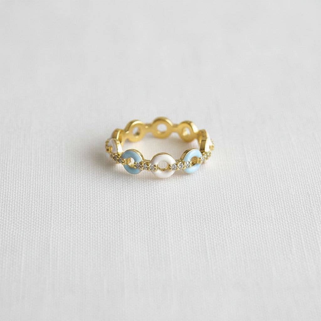 Elegant Open Ring with Blue and White Accent